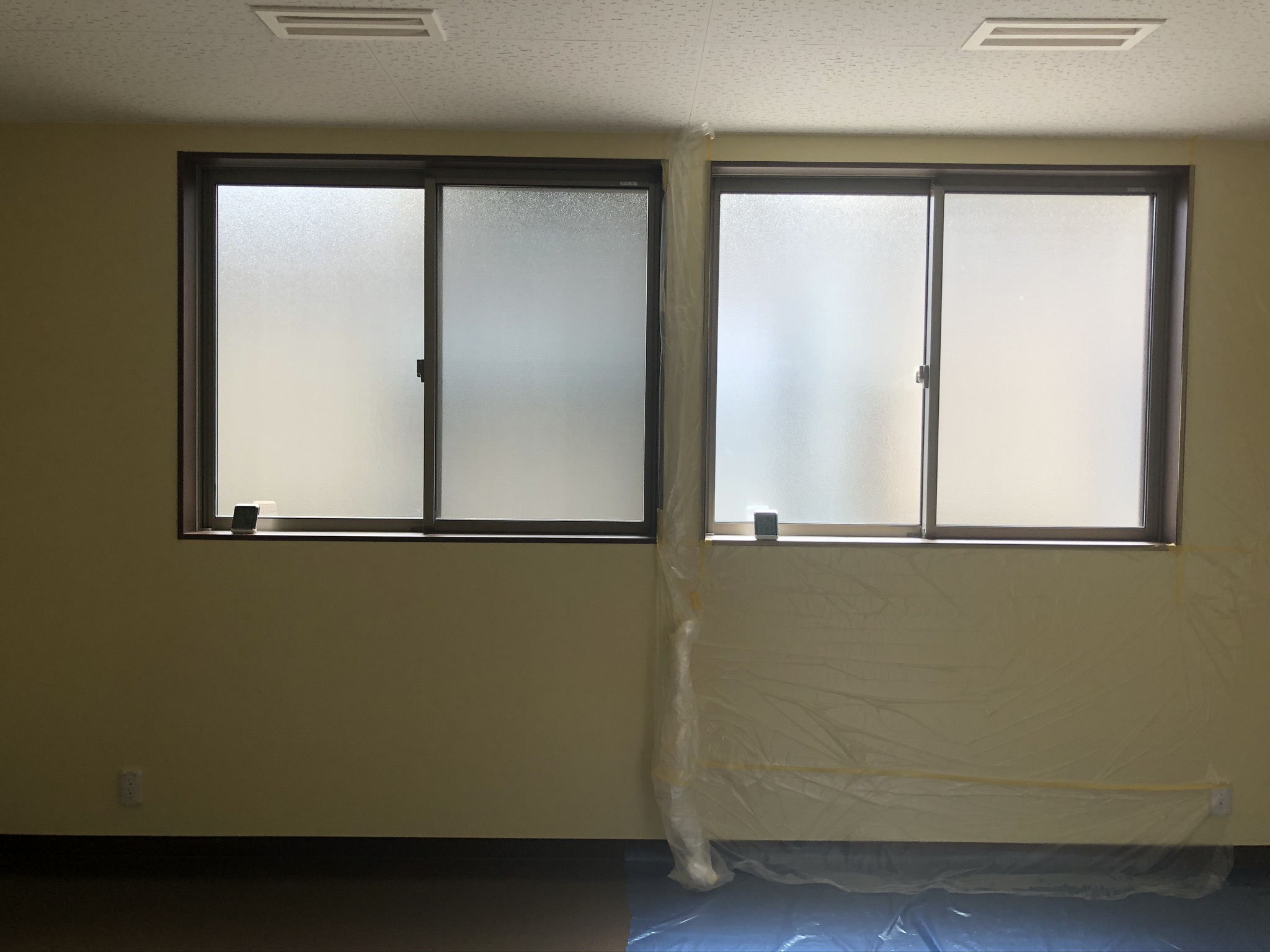 今回は工場の暑さを何とかして欲しいとの事で窓ガラス遮熱フィルム施工を行いました。工場内には多くの商品や材料、書類、機械などがありますが窓ガラスからの熱や光、紫外線などによる商品や材料の劣化を防ぐと同時に室内温度を安定させ作業の効率化や空調費の削減を実現させる為に行いました。施工時も暑さを感じ、4月でこの暑さ夏場はどうなるのかと…。下記写真はガラス4枚中の左側2枚を施工し温度計を用いて比較しました。