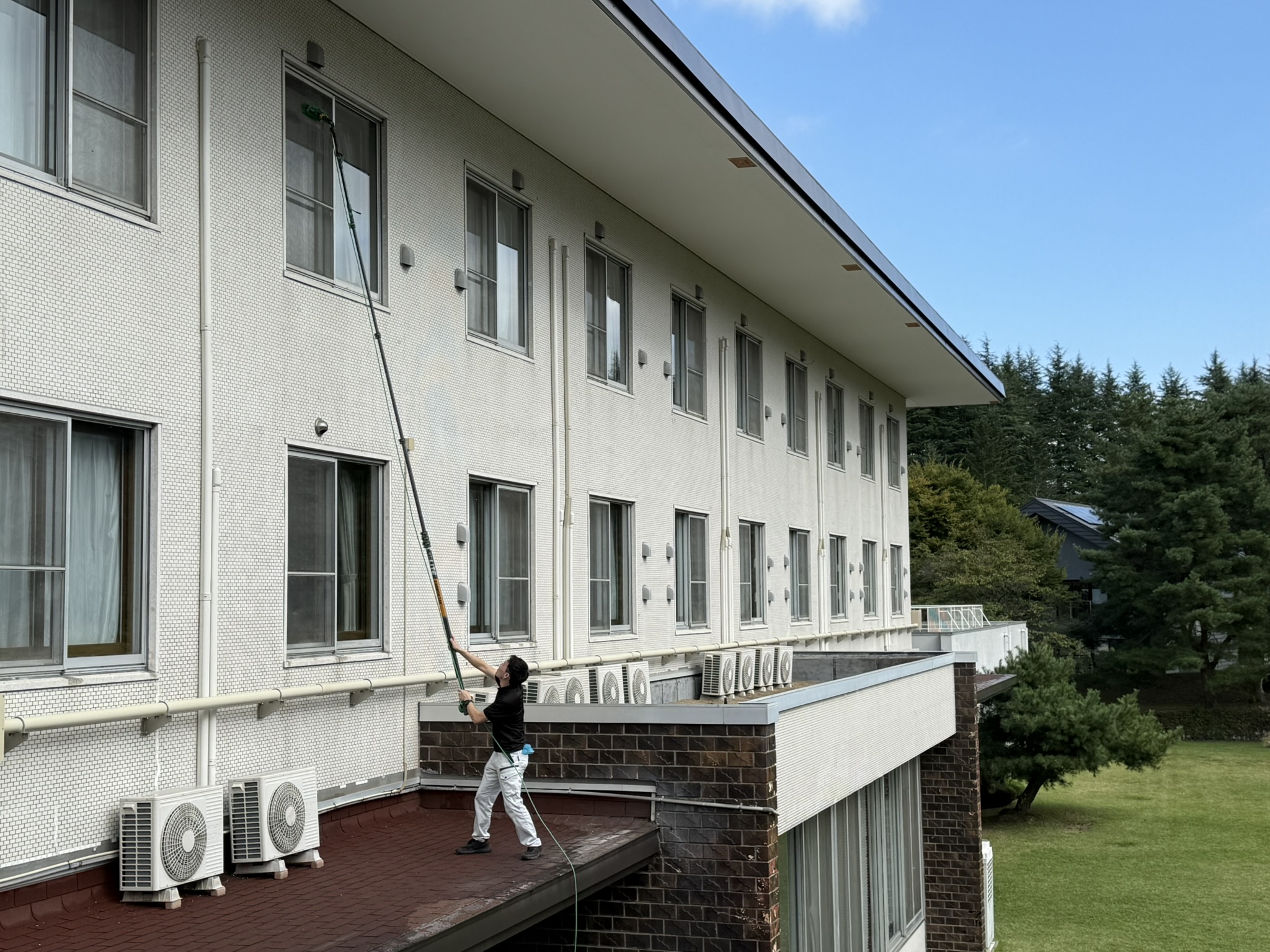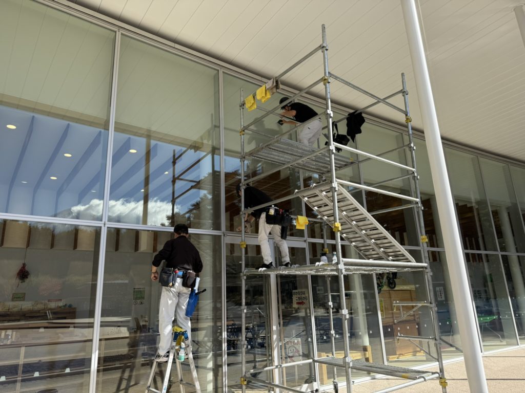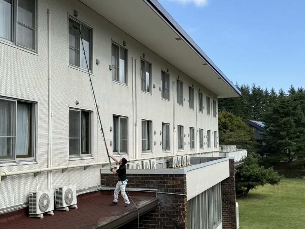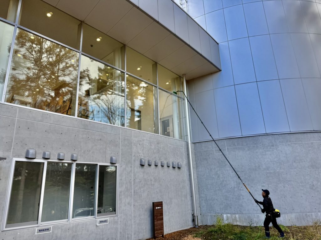 2025年11月17日 / 最終更新日 : 2025年11月17日 grs お知らせ 高所ガラス・外壁・太陽光パネル・ドームテントなど 不純物無の純水でクリアな仕上りに 足場や高所作業車も不要 高さ9m作業中 洗剤不要で環境に優しい アクリル・ドームテントも洗浄 外壁や太陽光パネルの洗浄も 高所の窓ガラスもカルシウムなど不純物を含まない純水で洗浄するからクリアに仕上がり、最高15mまで作業可能だから足場や高所作業車の使用できない場所にも最適で、経費も軽減!! 洗剤不要だから環境にも優しく汚れの付着も抑制します。ガラス・アクリル・外壁・太陽光パネル・グランピングテントなども洗浄可能です。