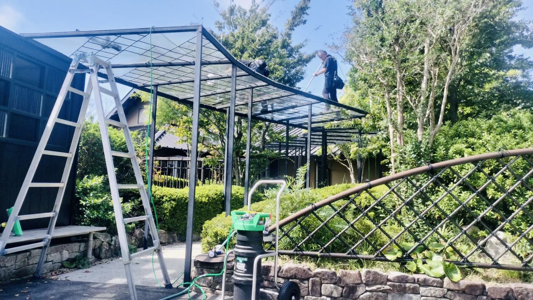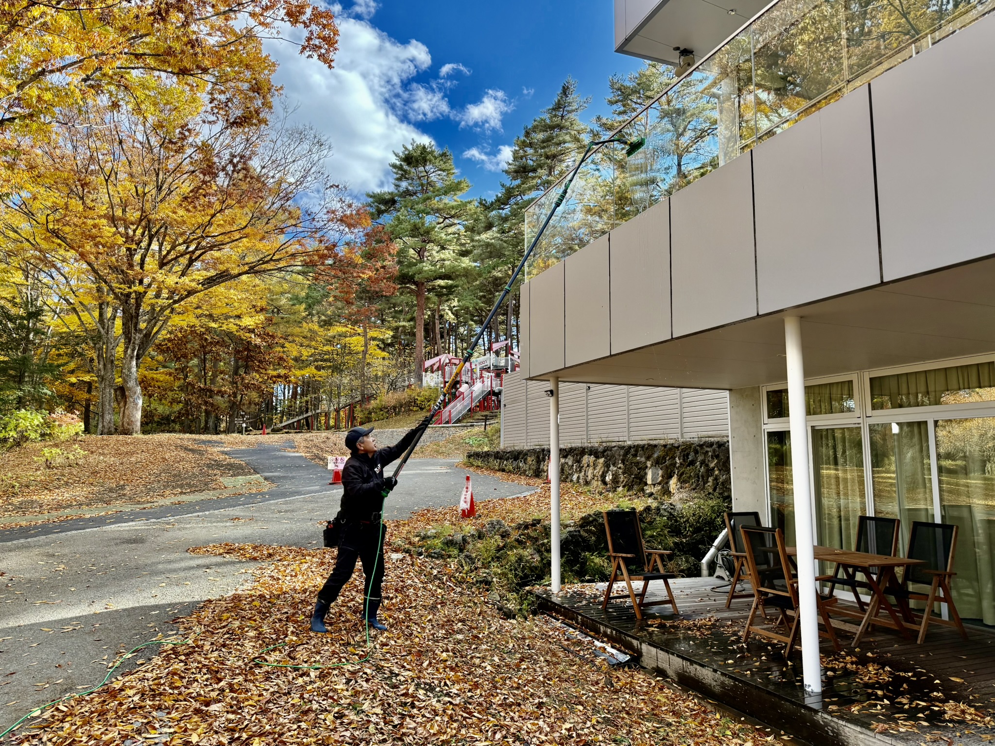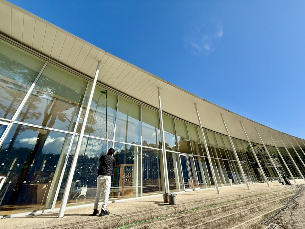 2025年11月17日 / 最終更新日 : 2025年11月17日 grs お知らせ 高所ガラス・外壁・太陽光パネル・ドームテントなど 不純物無の純水でクリアな仕上りに 足場や高所作業車も不要 高さ9m作業中 洗剤不要で環境に優しい アクリル・ドームテントも洗浄 外壁や太陽光パネルの洗浄も 高所の窓ガラスもカルシウムなど不純物を含まない純水で洗浄するからクリアに仕上がり、最高15mまで作業可能だから足場や高所作業車の使用できない場所にも最適で、経費も軽減!! 洗剤不要だから環境にも優しく汚れの付着も抑制します。ガラス・アクリル・外壁・太陽光パネル・グランピングテントなども洗浄可能です。