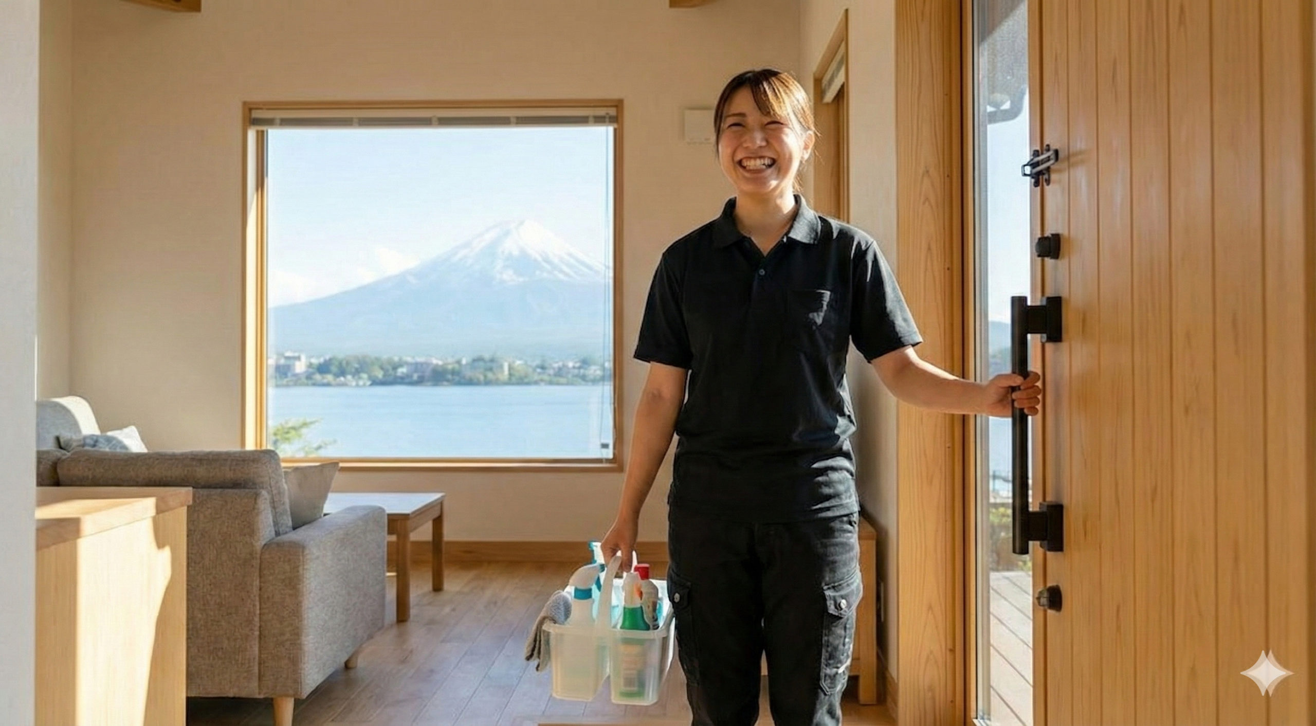 こんにちは! 今日はサンロークが担当している、河口湖近くの別荘清掃のお仕事についてご紹介します。